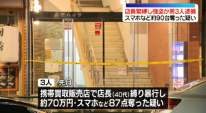 携帯電話販売店の店長を縛り上げてけがをさせ、現金や携帯電話などを奪った疑いで男3人が逮捕されました。