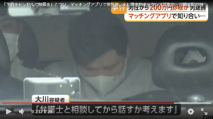 大川修平が現金とネックレスを騙し取ったとして逮捕。