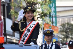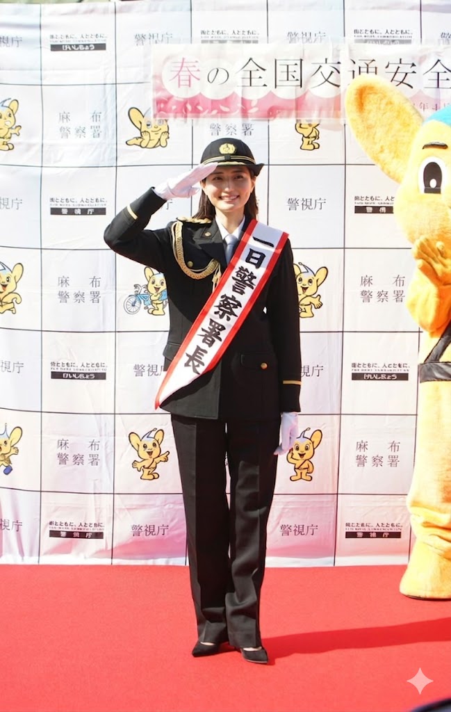 元研音で西麻布の会員制ラウンジでナンバーワンだった山賀琴子さんが麻布警察署の一日警察署長に。