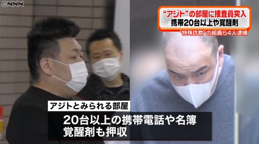アジトにしていた部屋からは20台以上の携帯電話や名簿、覚醒剤も押収された。