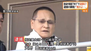 山口組系幹部の冨久尾晃が除染作業員の派遣に絡み人材派遣会社の社員を恐喝したとして逮捕。